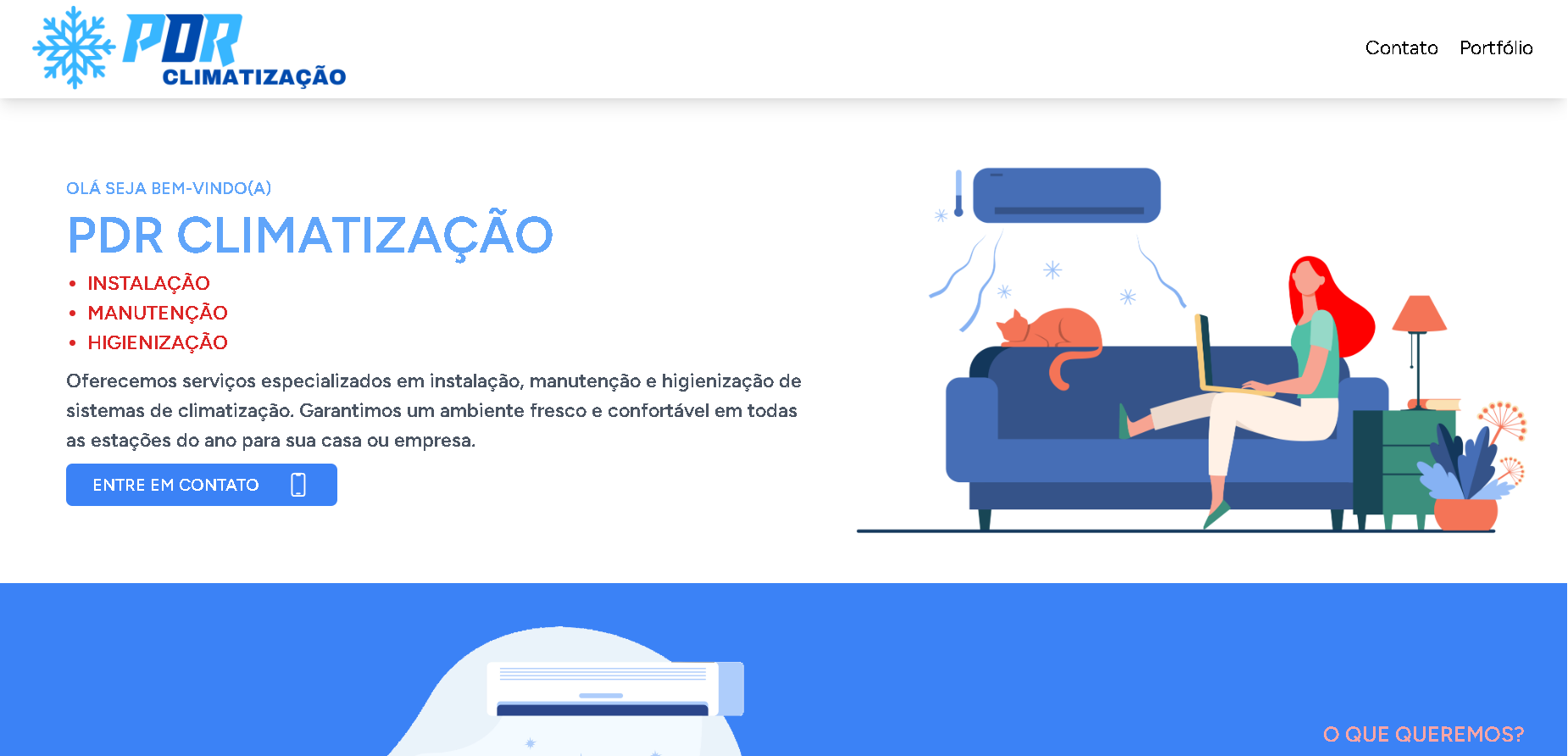 Desenvolvi o site da empresa com o propósito de atrair mais clientes e redireciona-los para o Whatsapp, onde entrariam em contato para solicitar os serviços